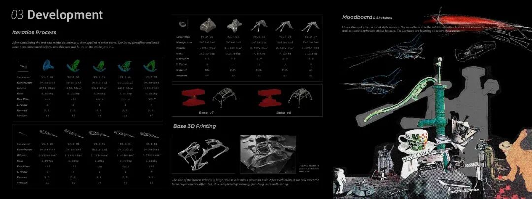 这些目标有的很抽象(如有机美学),也有的十分具体(如机械结构效率),而且这个项目是在不断试验中才逐步有清晰的目标展现。
