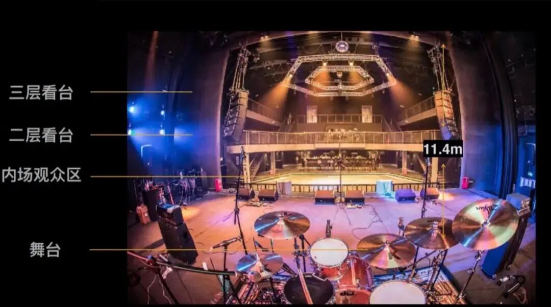 而内部的演出场地拥有着顶级的硬件设备,内场观众区可容纳300-450人,二层和三层的看台可容纳800-1000人。